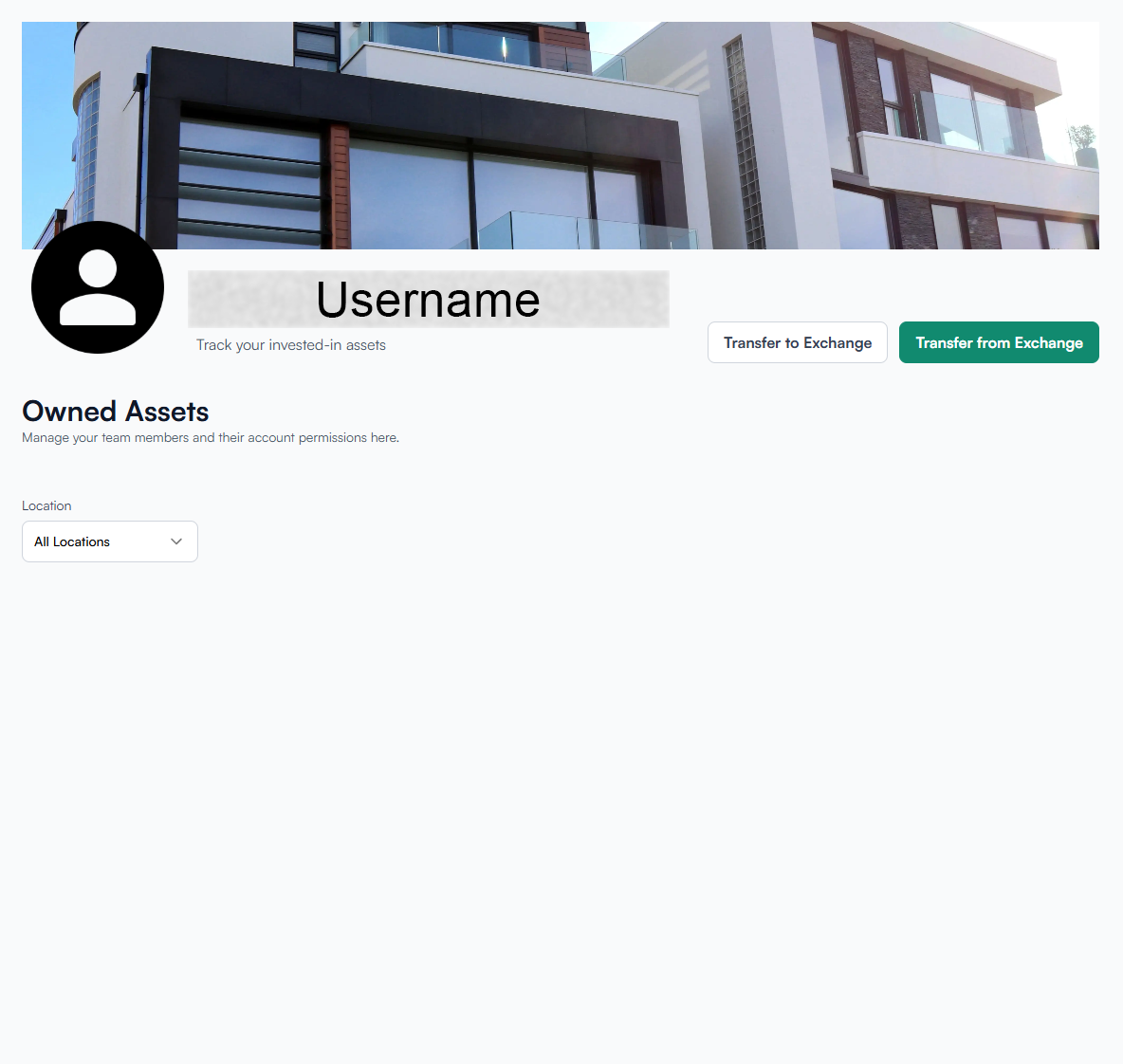 The Portfolio page serves as the investor's personal real estate vault – a centralized place to monitor ownership and execute transfers between the exchange and wallet.